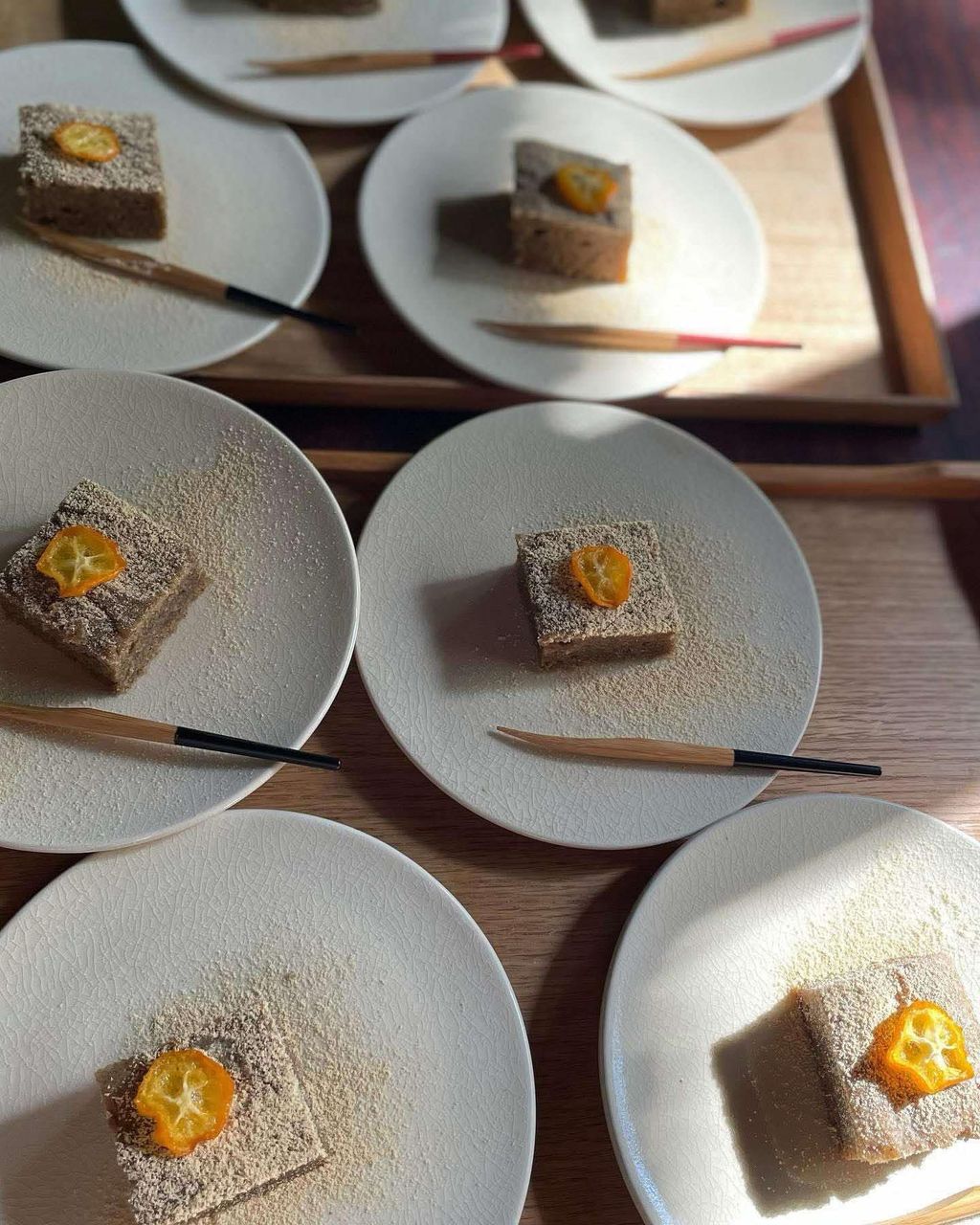 • 包含茶席中的三款有機日本茶、台灣野放茶,以及分別搭配的三種季節茶菓(有紀子老師與龜時間聯手製作)